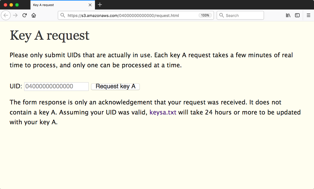 We can see that because along with the standard, public information that every tag presents, for NFC tags which can be protected, there are also standard keys and passwords that are commonly used, often to allow for public readers, while still restricting who can write to or update a tag. This tag uses a common, standard, factory default key, meaning anyone can see what's on it.