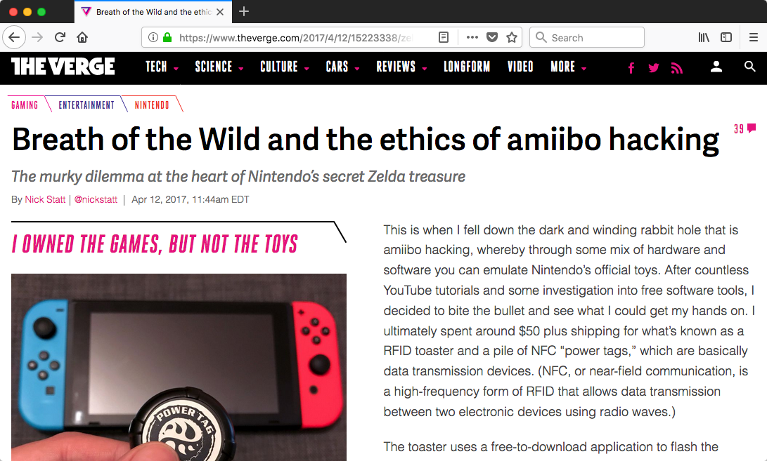 That said, while they're technically no different than a bare NFC tag, because NFC toys are often intended to support interactions with copyrighted, digital content, they may be legally different if we want to use them for our own purposes. We should be able to play with our toys as we see fit, and it's up to us to assert our rights to do so.