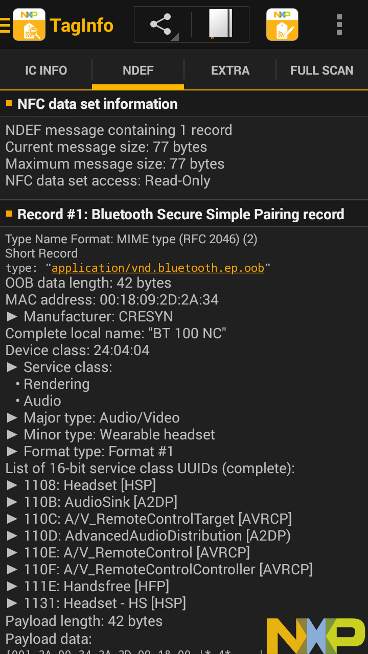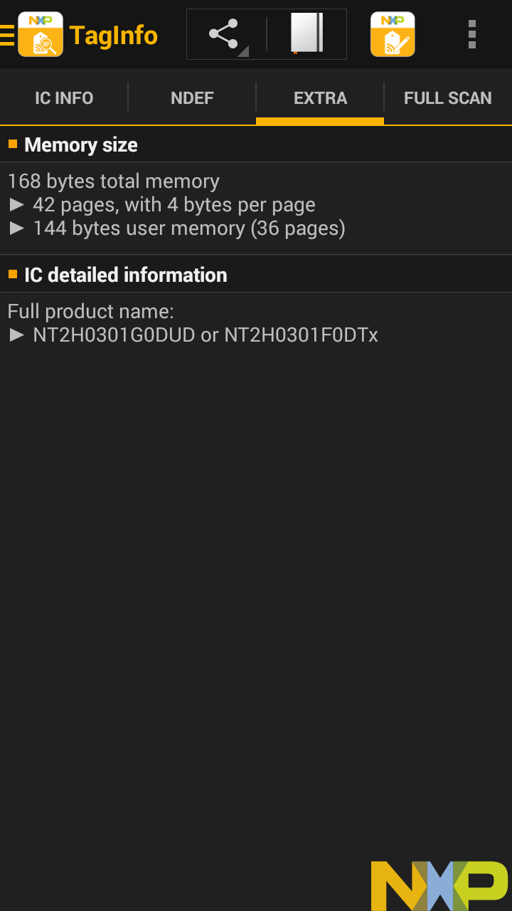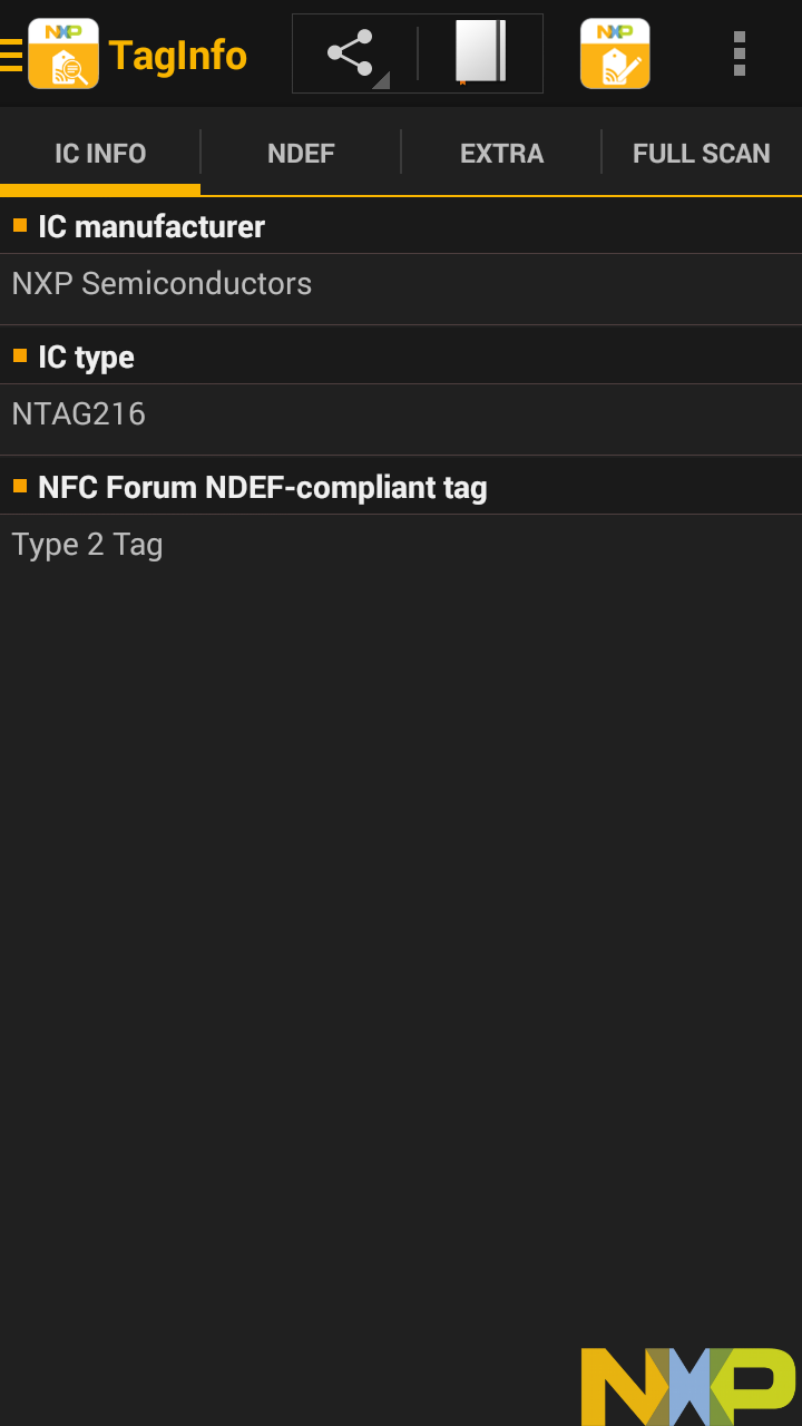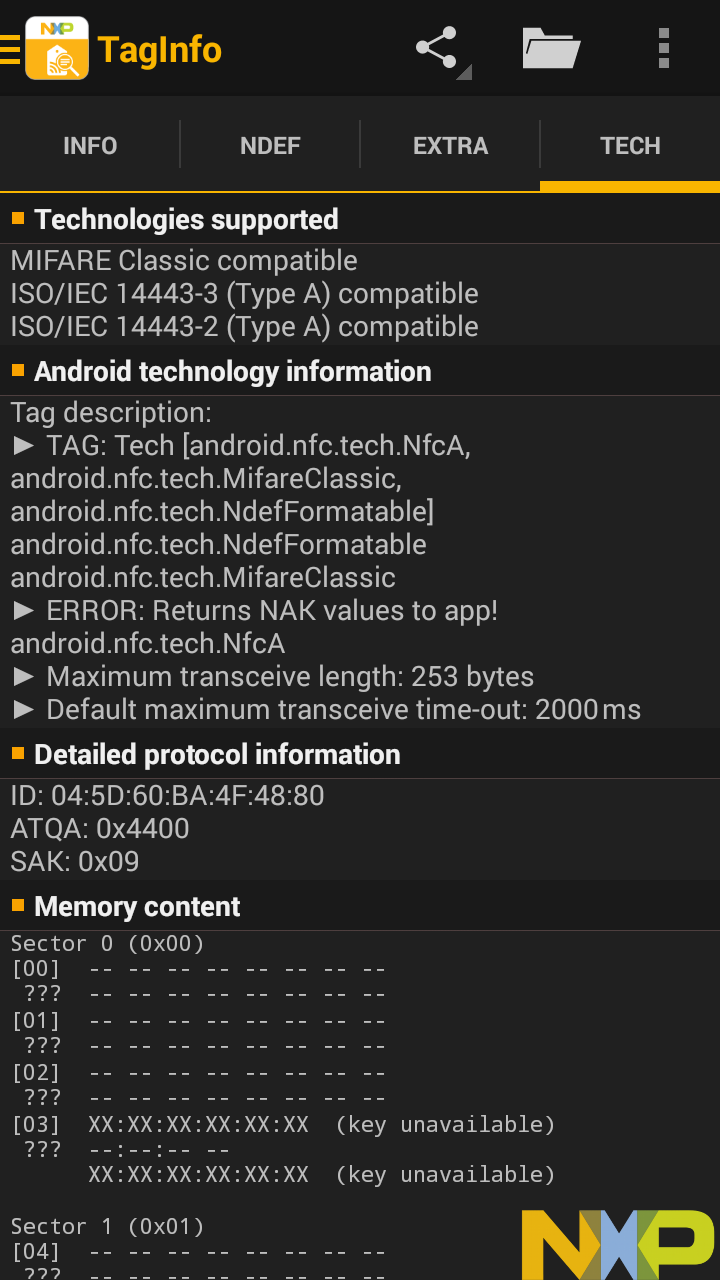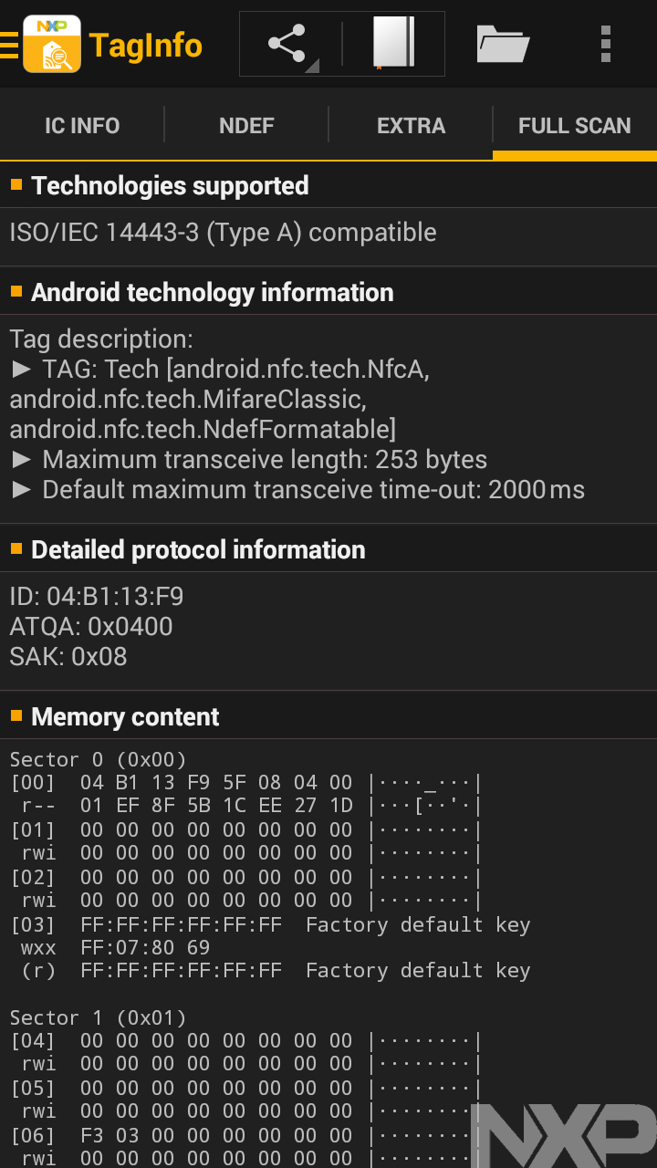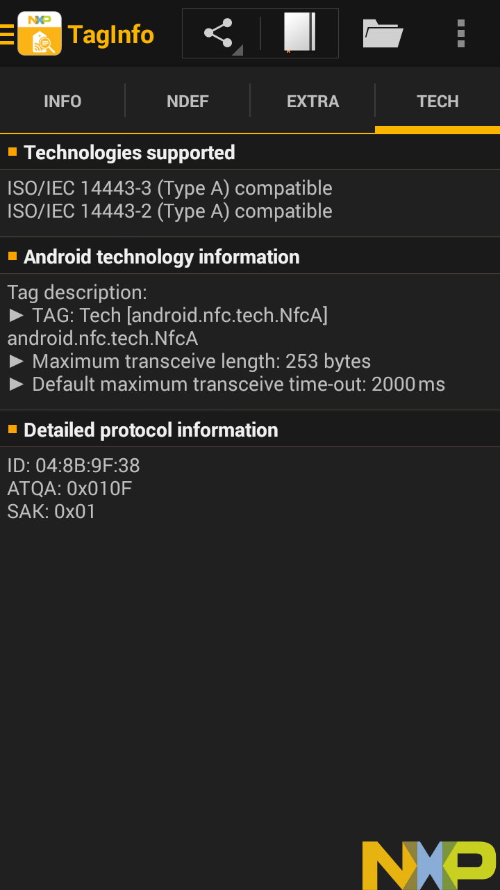 Since it's an NXP tag, let's see if NXP's own app, NXP TagInfo, can tell us anything more.