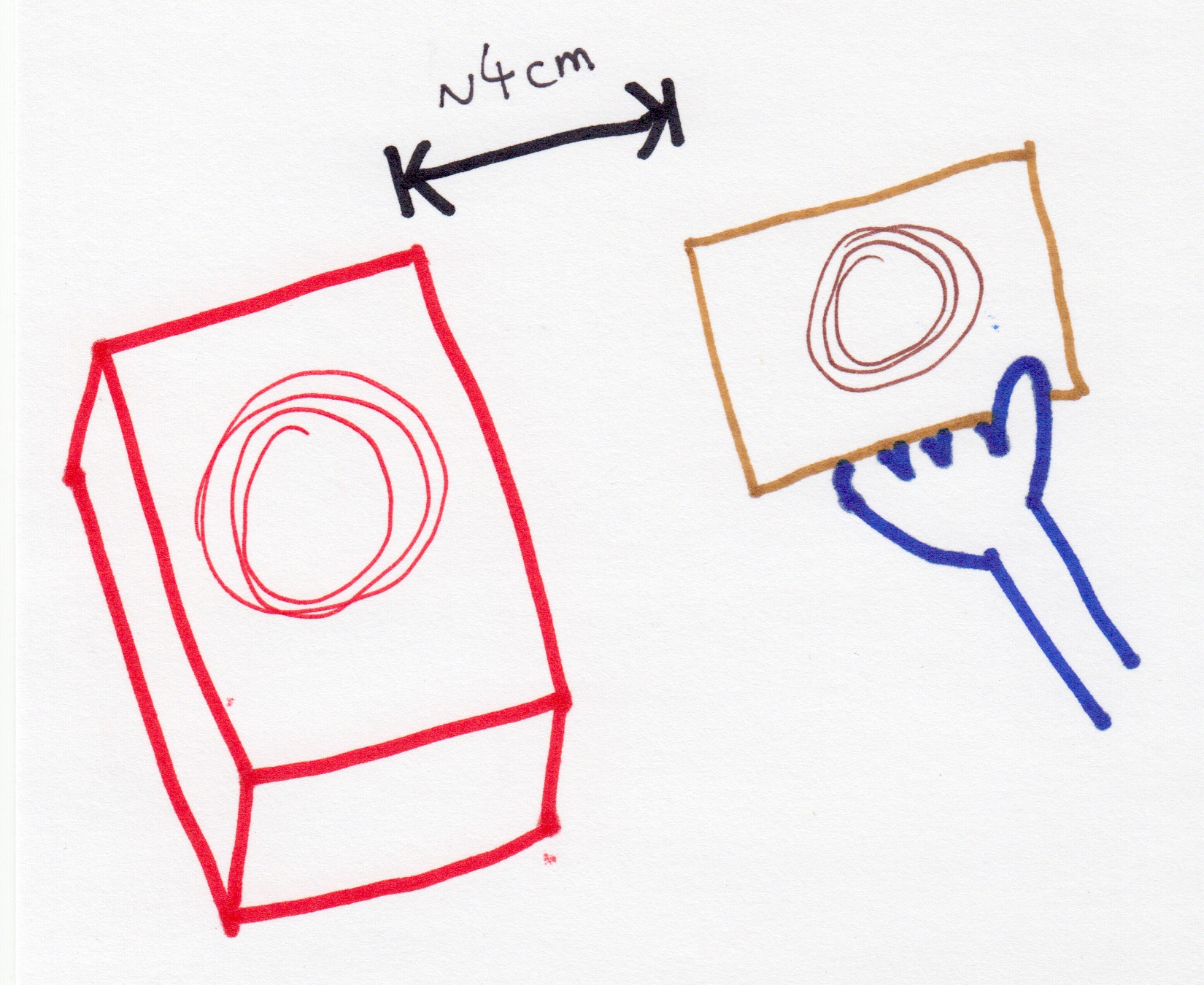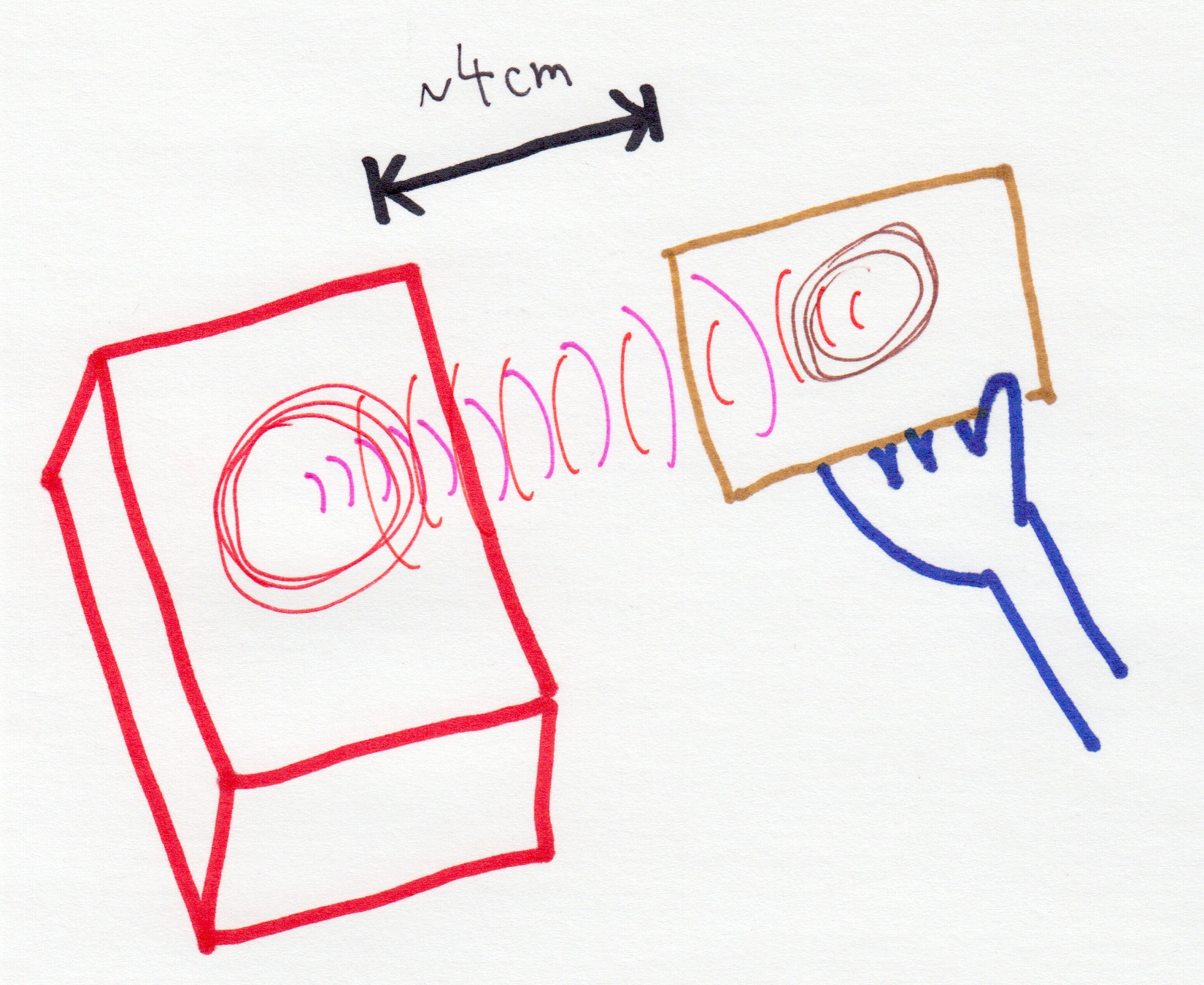 When a tag, or your phone talking like a tag, is near enough to a reader, generally millimeters to centimeters,