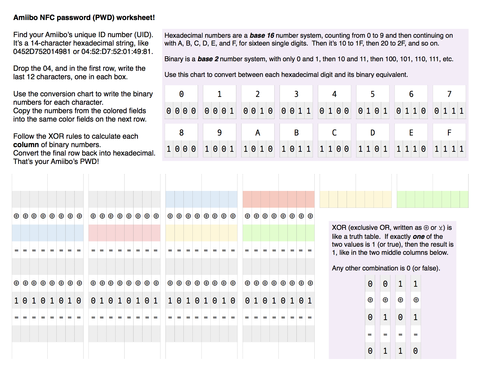 These are Amiibo cards, each card has an Amiibo NFC tag inside. Clipped to the card is a worksheet which explains how to compute the PWD for the Amiibo card longhand, I hope you'll enjoy working through it.