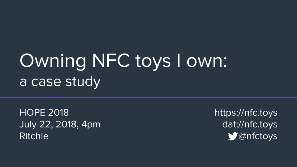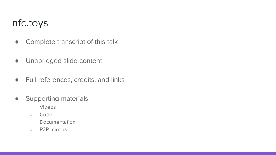 That's it for my talk, we don't have time to do Q&A, but I'll reply on nfc.toys to any questions submitted.