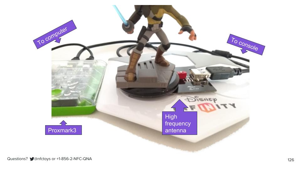 The NFC tag in slide 10 and 14 is from a Skylanders "Bash" figure, the same tag and toy seen disassembled in slides 34 and 181.
